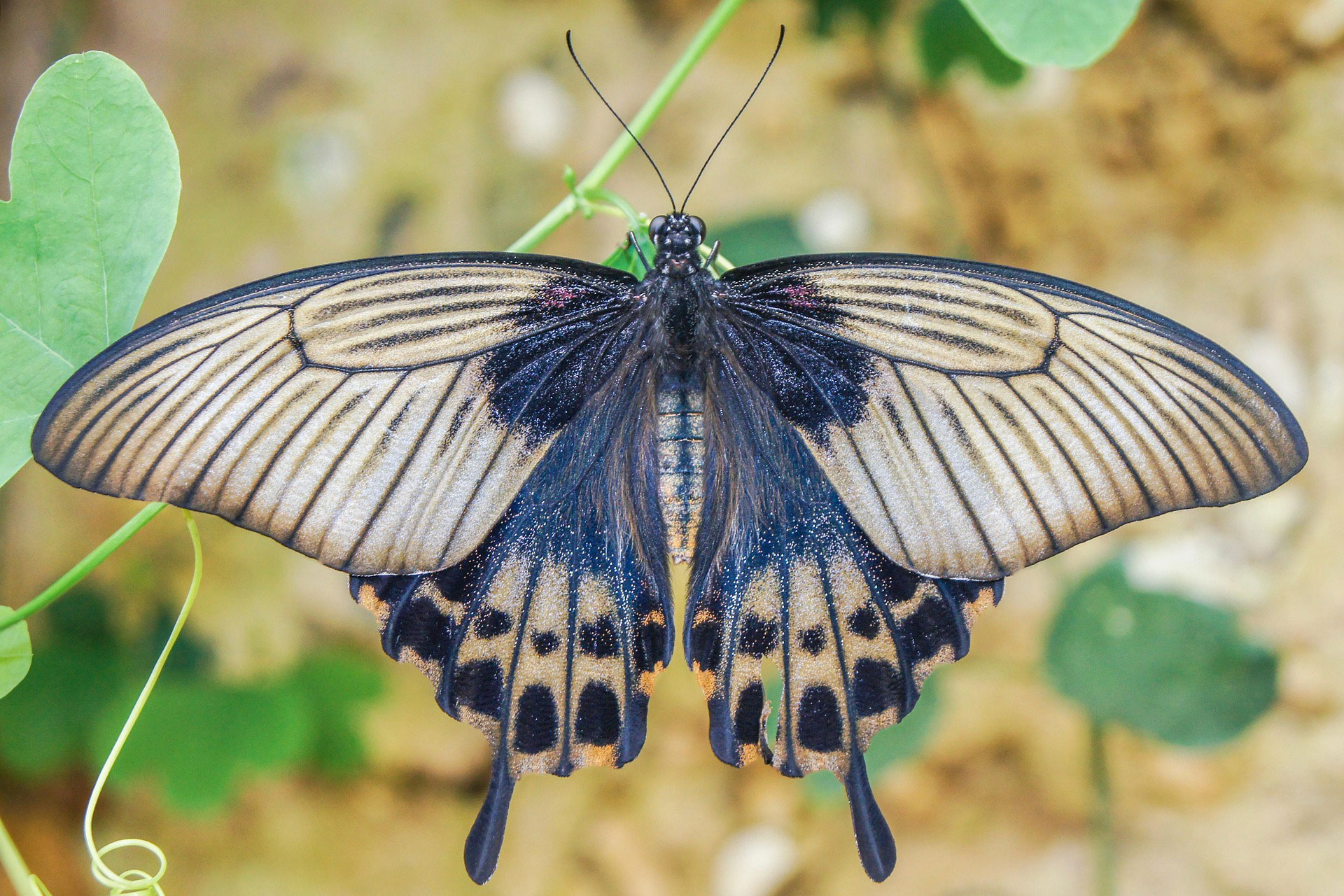 鳳蝶幼蟲齡期通常分為五齡,幼蟲取食寄主植物的葉片。本園寄主植物包括馬兜鈴科(如:港口馬兜鈴)、木蘭科(如:烏心石)、番荔枝科(如:鷹爪花)、樟科(如:樟樹)和芸香科(如:柑橘)。通常一種蝶只取食特定一科的植物,體內儲存寄主植物的植物鹼,其體液與臭角所散發的氣味,也因所攝食植物而異。例如:取食馬兜鈴的鳳蝶,體內含有具毒性的馬兜鈴酸,能令鳥類等捕食性天敵敬而遠之,成蝶的翅和軀幹並且帶有紅色或黃色的警戒色;取食芸香科的鳳蝶,幼蟲在四齡以前模擬鳥糞,五齡蟲胸部有一對假眼,臨敵時漲大胸部與假眼紋威嚇敵人,並翻出臭角,散發檸檬酸氣味怯敵。